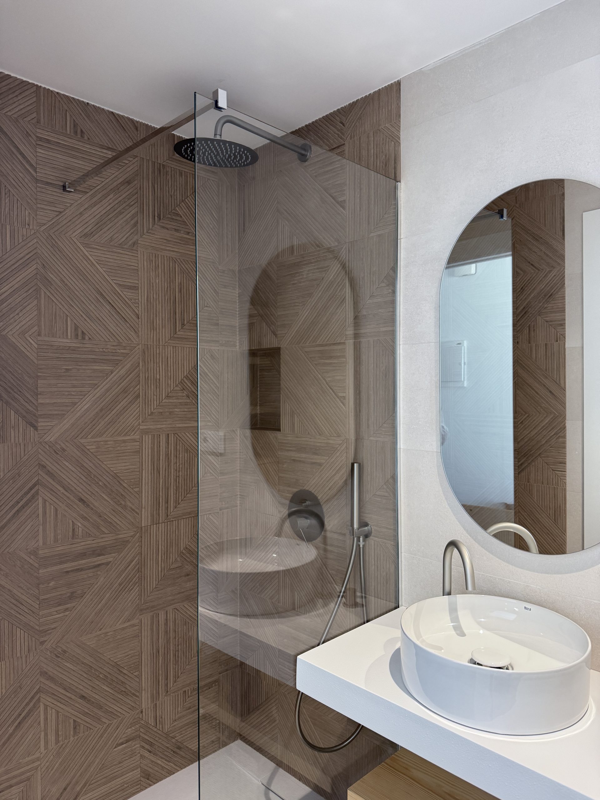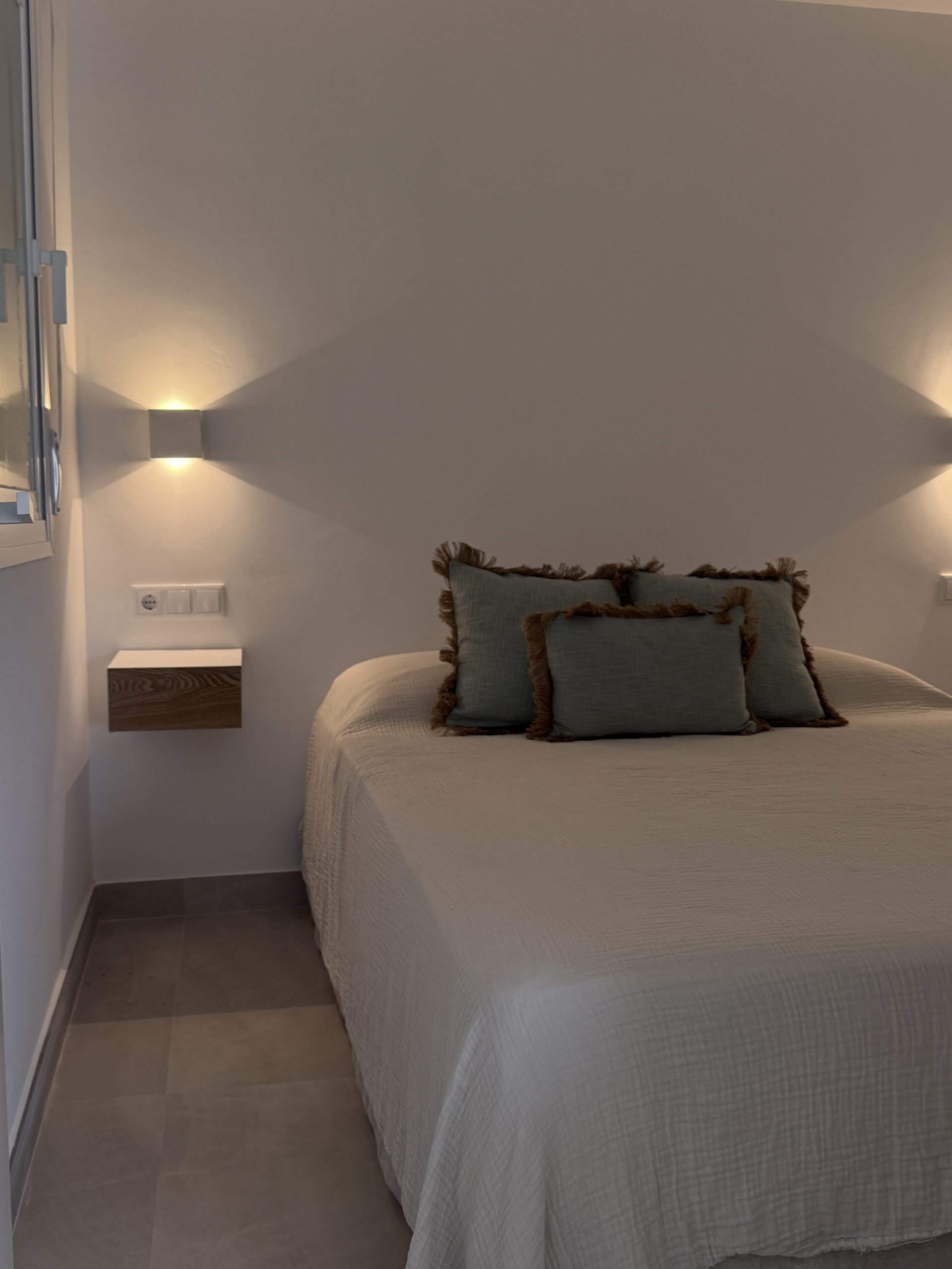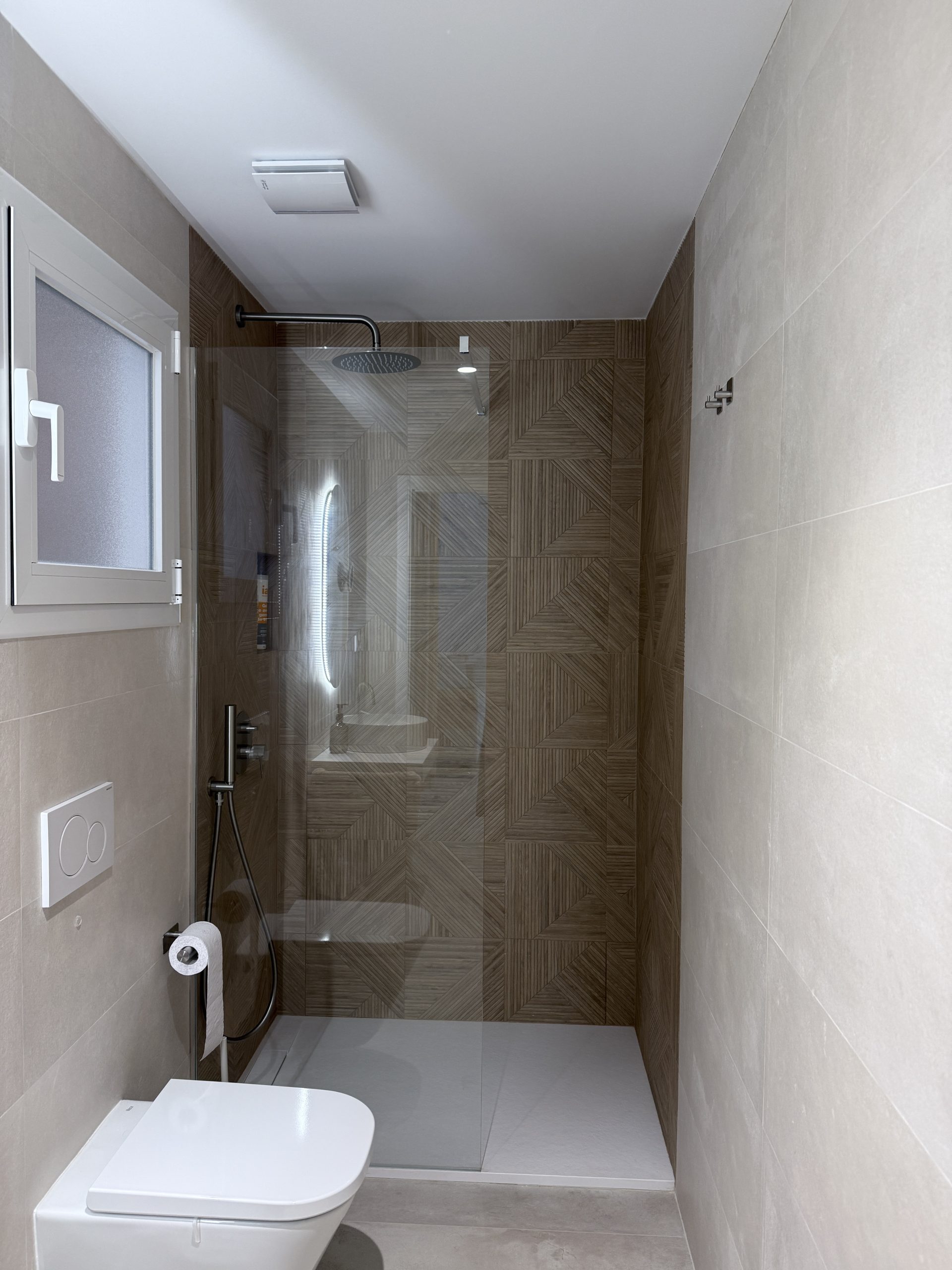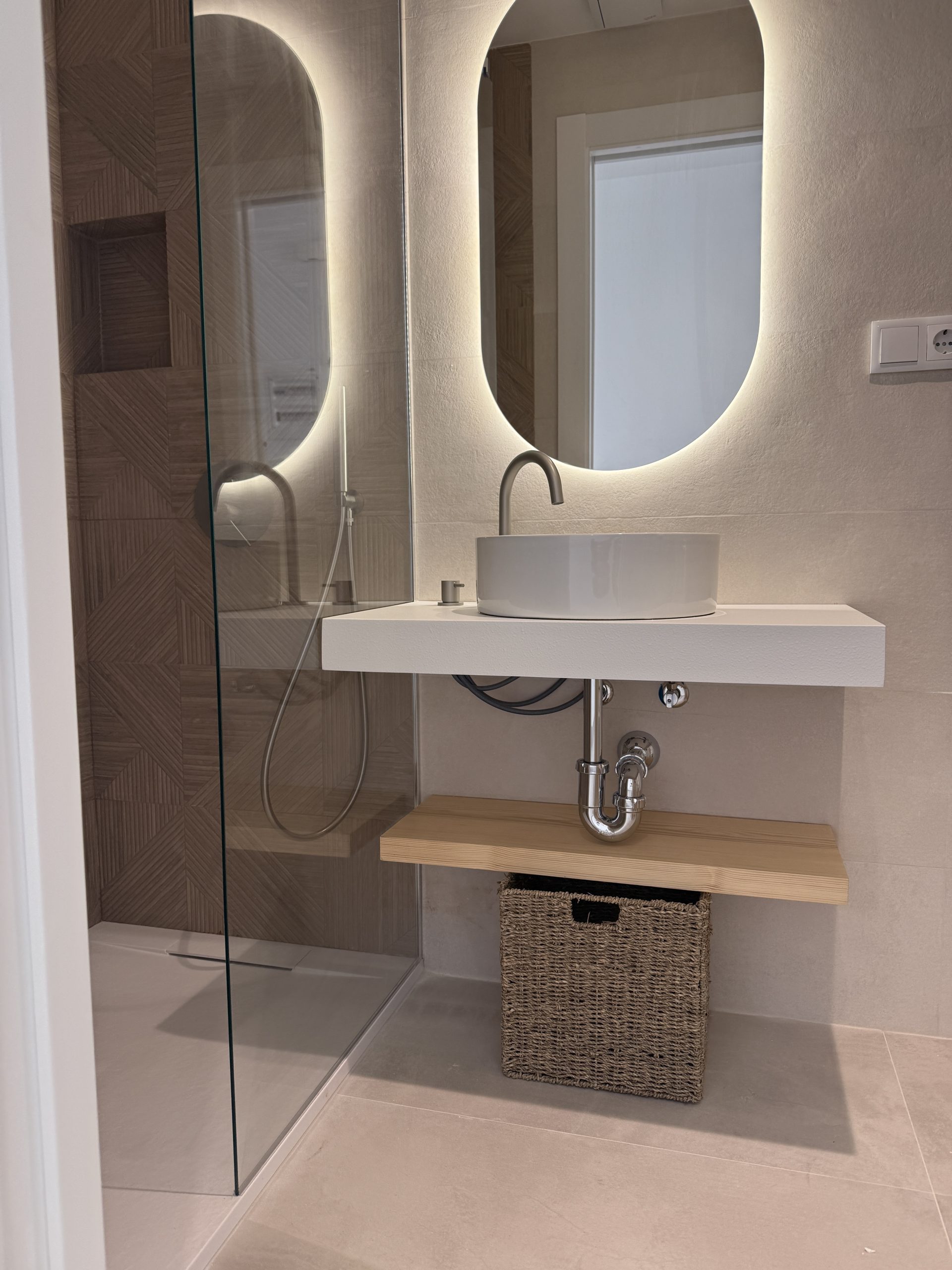 Reformar una vivienda situada frente al mar en un edificio con más de 50 años de antigüedad, realizando un diseño que responda a las necesidades del cliente y a un diseño mediterráneo acorde con la ubicación del mismo. Mejoramos la eficiencia de la vivienda colocando aislamiento térmico y acústico en fachada y tabiques medianeros, instalamos ventanas con doble acristalamiento y protección acústica y térmica consiguiendo así una mayor hermeticidad. En cuanto al diseño optamos por materiales de calidad superior que nos garanticen una gran durabilidad teniendo en cuenta que nos ubicamos justamente en frente del mar. Aprovechamos las vistas al mar para generar ventanas de suelo a techo que den mayor amplitud a la vivienda, consiguiendo un espacio luminoso y relajante.