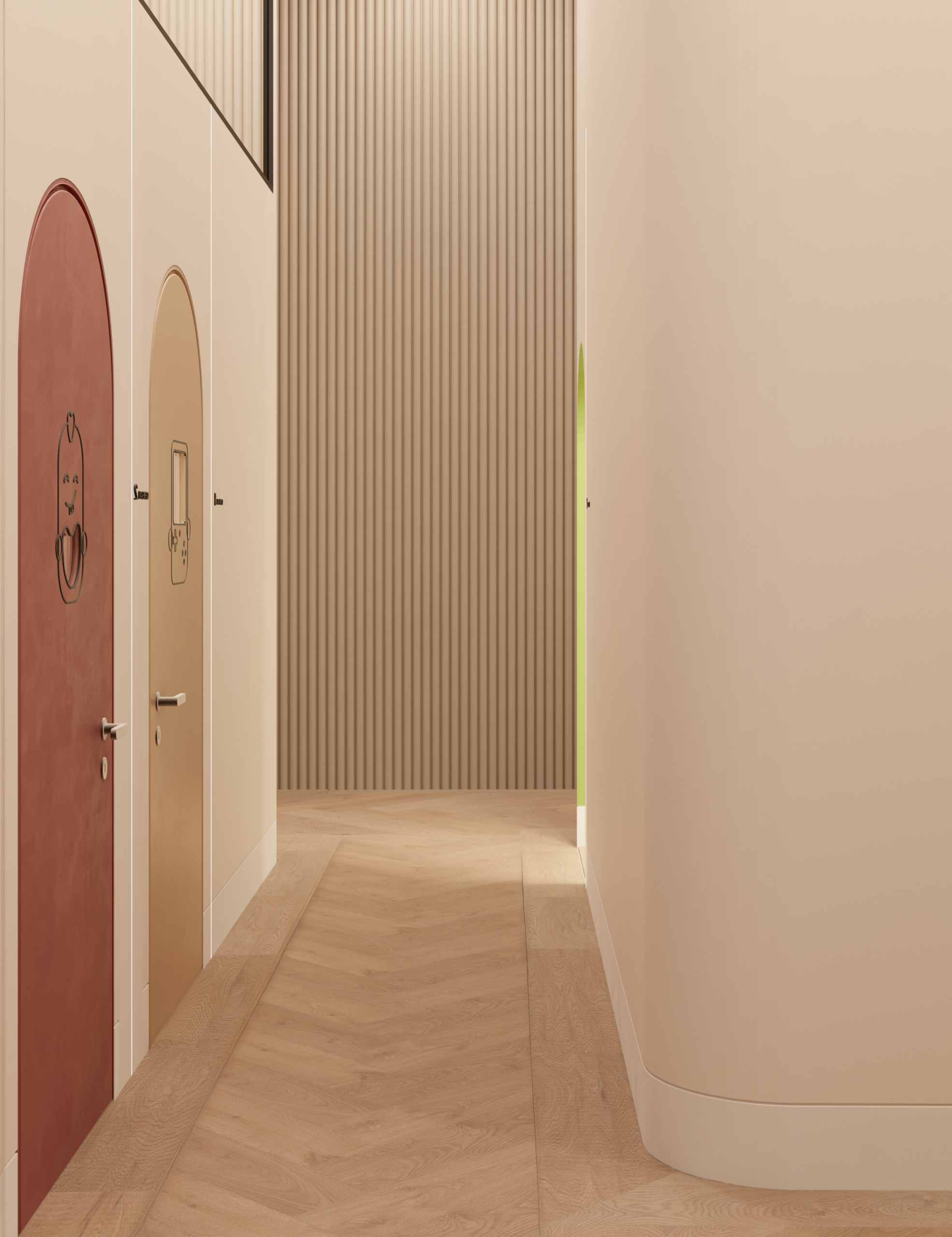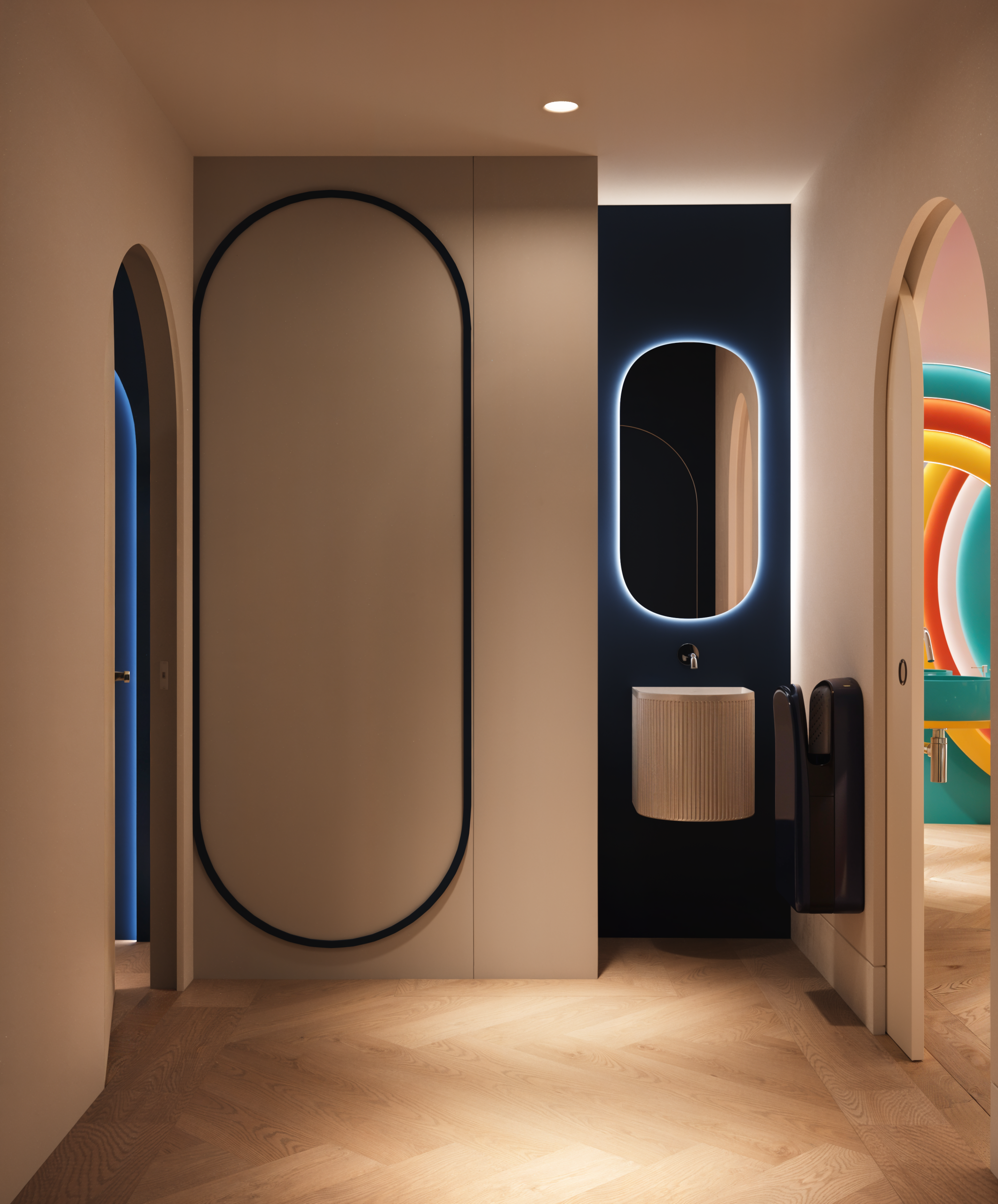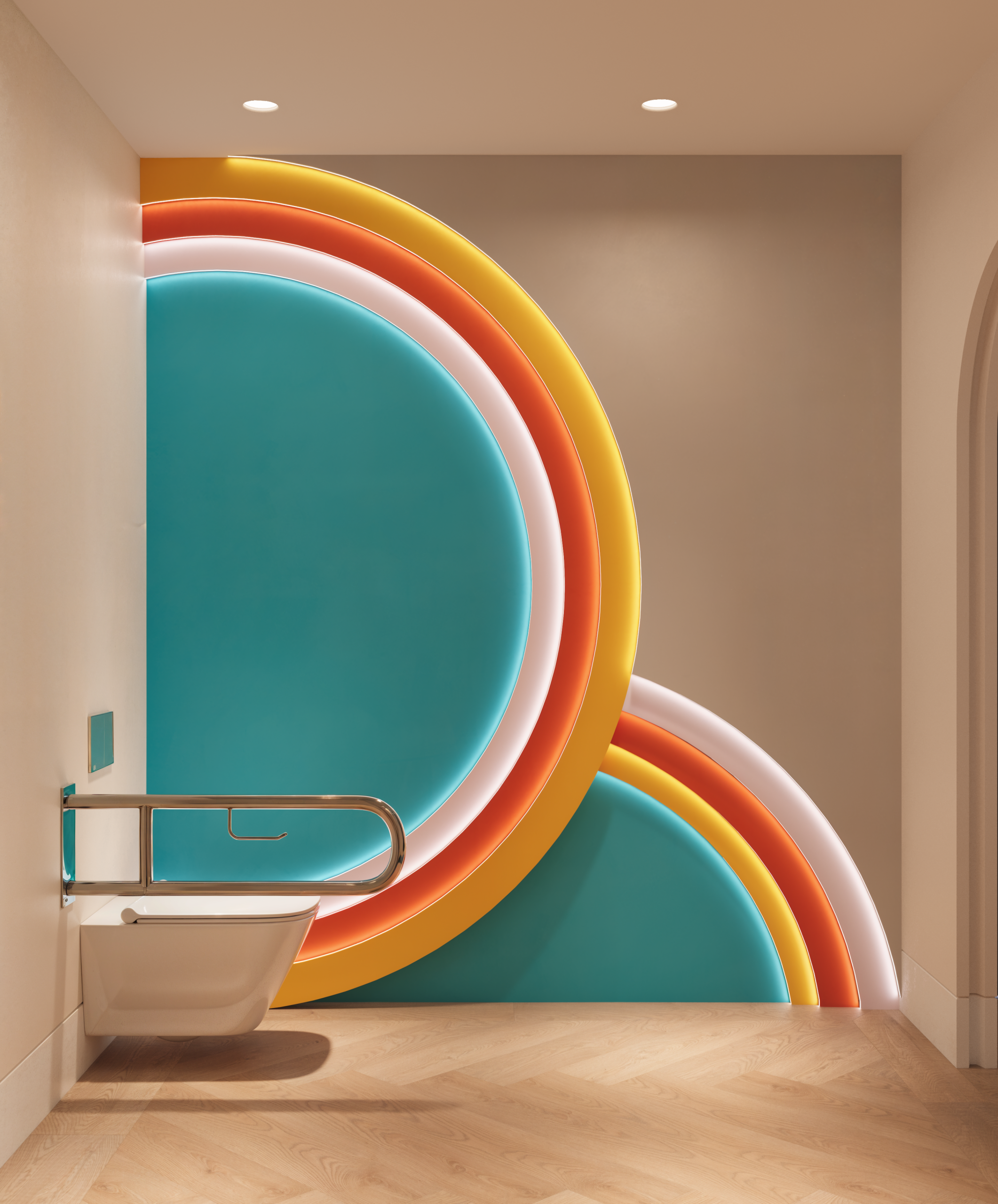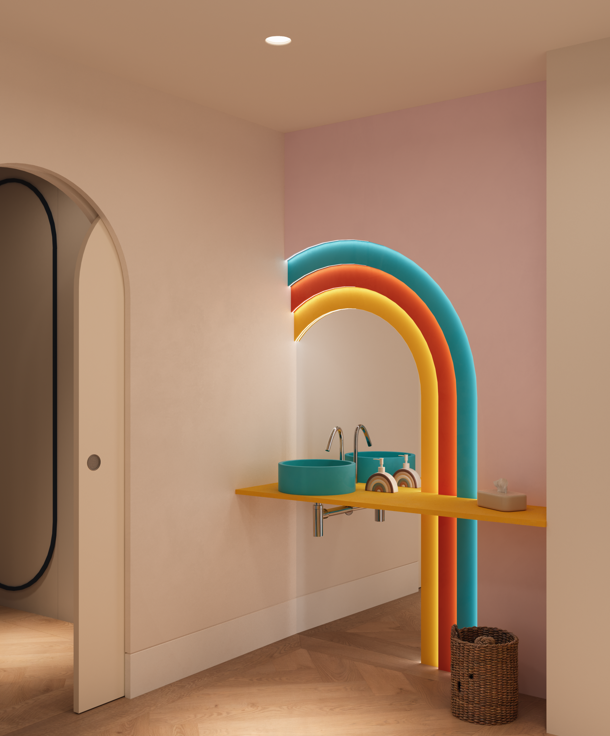 El proyecto se centró en crear una clínica dental infantil en Granada pensada para mejorar la experiencia del paciente más pequeño. La sala de espera se diseñó con diferentes zonas animadas que generan un ambiente acogedor y lúdico. Los aseos coloridos y los gabinetes odontológicos temáticos se concibieron como espacios funcionales y divertidos, donde el niño se sienta seguro y motivado.