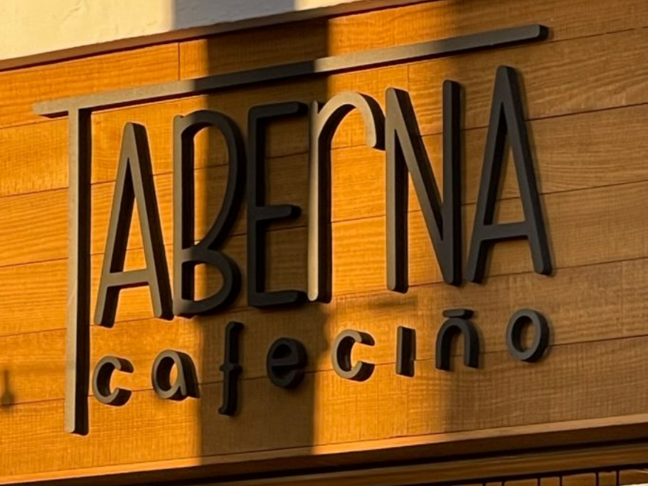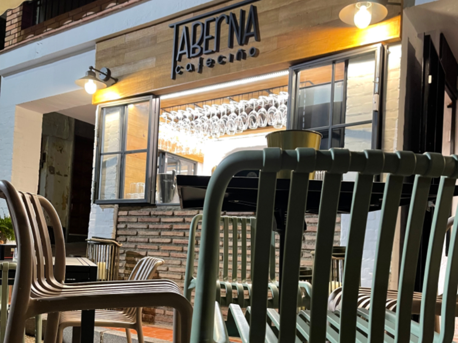 Los actuales propietarios, descendientes de los originales dueños, quisieron recuperar el nombre de Cafeciño en honor a su familia pero, el concepto de negocio quedaba un poco lejos de ser una cafetería al uso por lo que decidimos incluir como elemento principal y conceptual la palabra TABERNA, dándole énfasis al concepto de bar que iban a llevar a cabo.